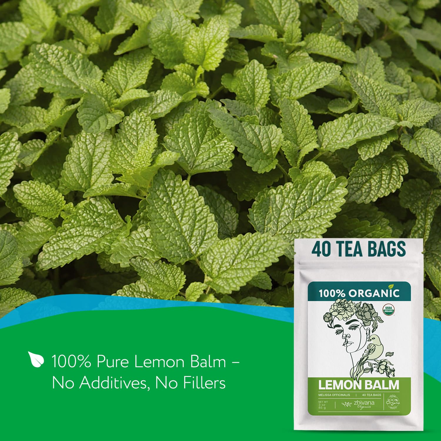 Lemon Balm Tea Organic (40 Tea Bags) - Melissa Tea, Te de Tolonjil – Calming Herbal TeaBags for Sleep, Emotional Balance